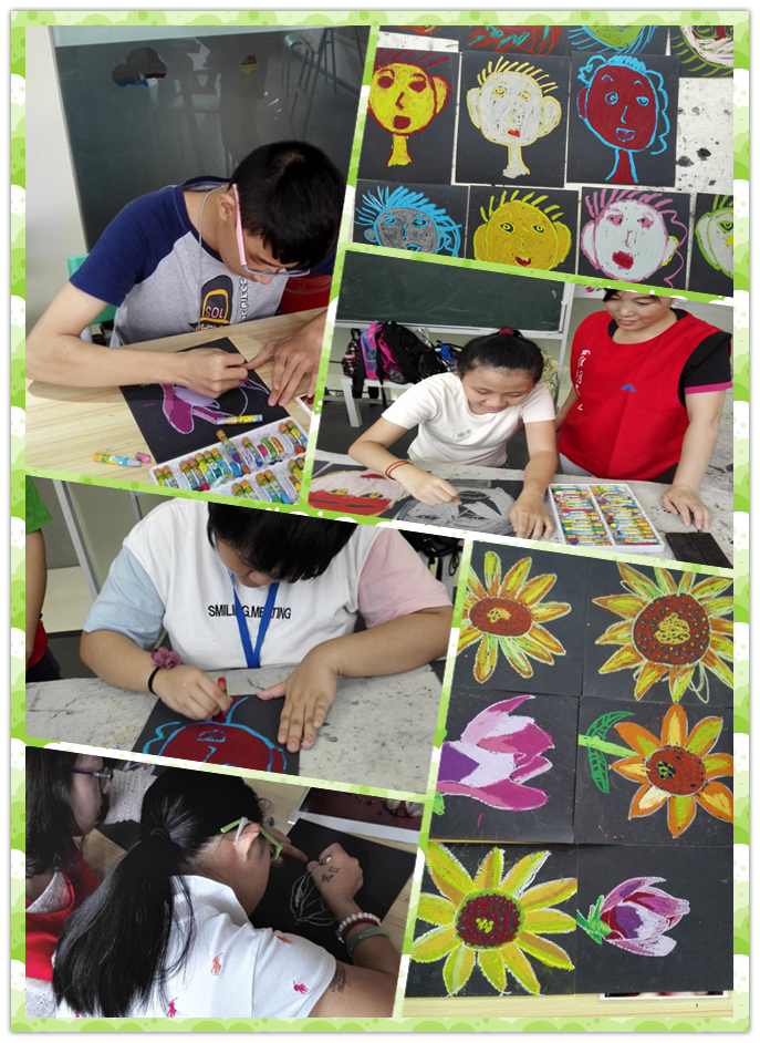 2、色彩的世界是丰富多彩的,学员们在绘画活动中,感受到了色彩的魅力;在此同时,画笔的使用、颜色的调和、手臂的力度等都与整幅画密切相关,而在这其中,学员们也展现出了他们眼中的世界。