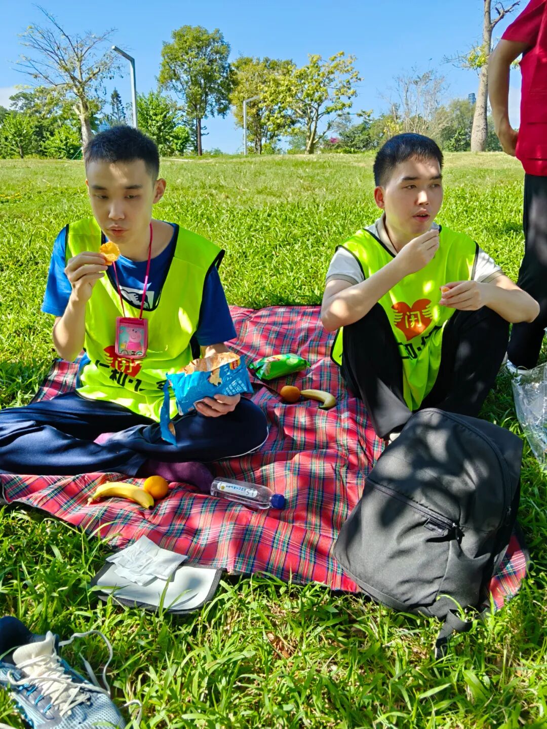 抵达东湖公园后,徒步活动正式开启。志愿者们一对一陪伴在星娃身边,根据星娃的节奏调整步伐,时而指着路边的花草树木为他们讲解,时而引导他们聆听鸟鸣、感受微风。徒步结束后,大家来到公园的草坪上开始野餐。志愿者细心地为星娃分发餐食,现场氛围温馨而热闹。