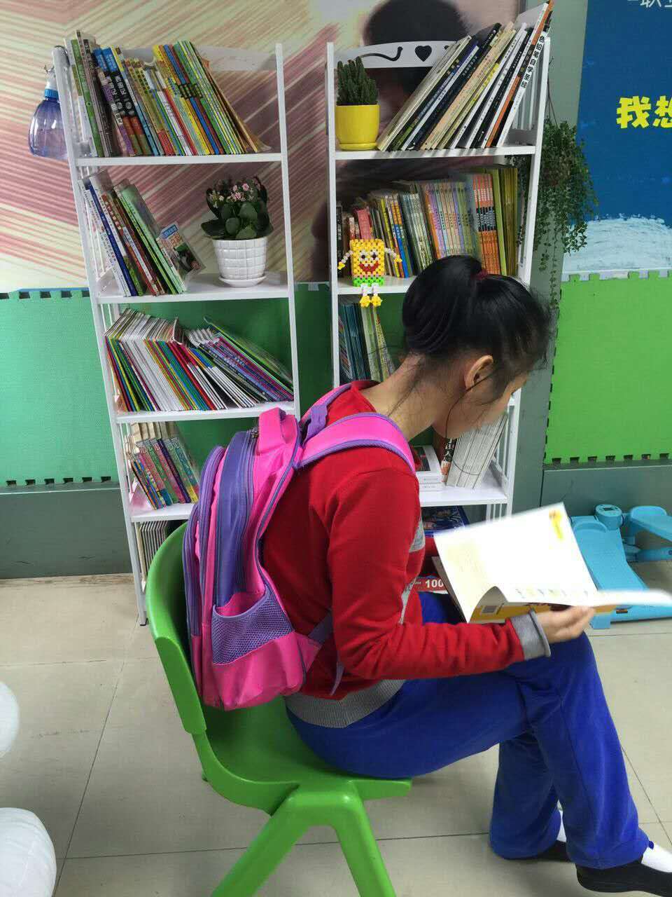 ●书籍刚摆放上去,弯弯就迫不及待的阅读开来,她可是书屋最资深的客人了。