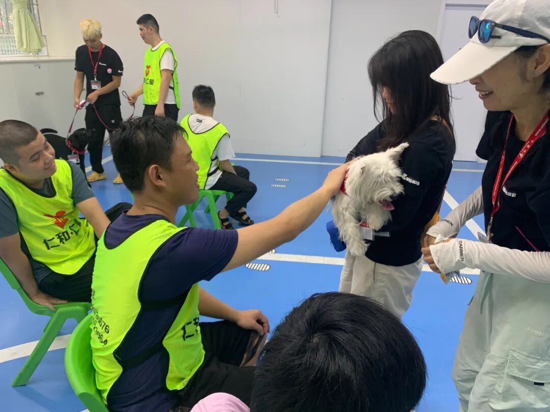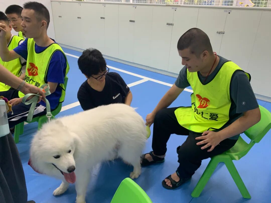 “狗医生”们身着定制的红色小背心,在主人的引导下,温顺地接受星娃的触摸与投喂。当“旺旺”主动将脑袋星娃的手心,当“白白”叼着玩具球轻轻放在星娃的手中,星娃的眼中渐渐有了光亮。活动中,星娃从最初的抗拒到尝试喂食,再到后来主动分享玩具,每一个细微的进步都让我们倍感欣慰。